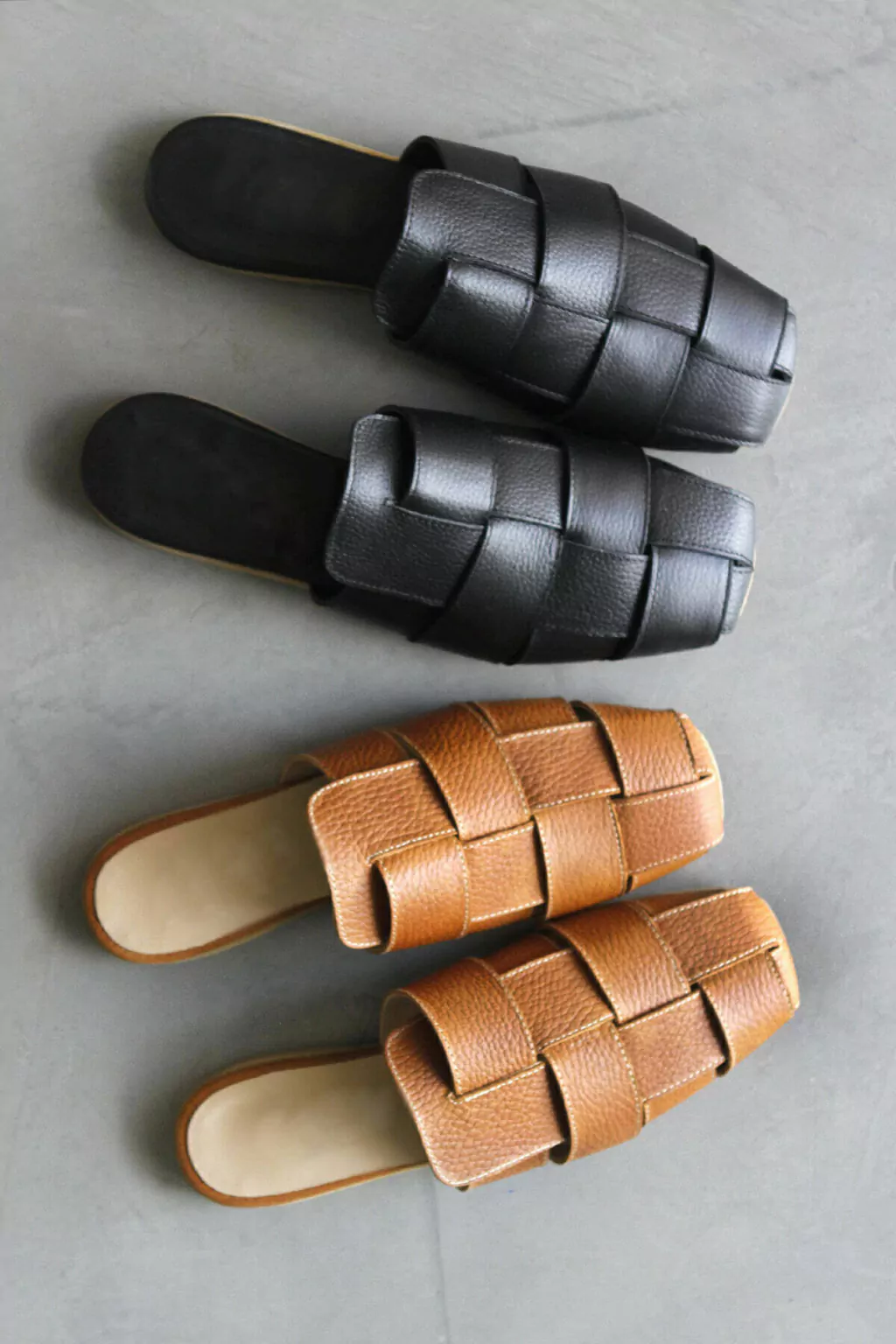 Chatitas mules de cuero vacuno mujer. Su capellada está confeccionada con tiras entrelazadas y su punta es cuadrada. Diseño original y en tendencia para estar cómoda, fresca y a la moda todos los días.